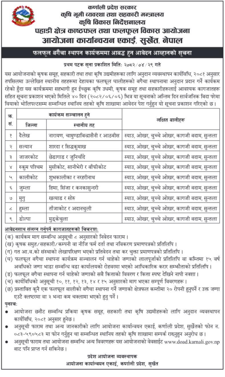 NAFHA contributes directly to Nepal’s Agriculture Development Strategy (ADS) and supports the Government of Nepal’s broader commitment to inclusive economic growth, food and nutrition security, and the Sustainable Development Goals (SDGs). The project serves as a flagship initiative for promoting climate-smart, commercially viable horticulture in hilly regions of Nepal.